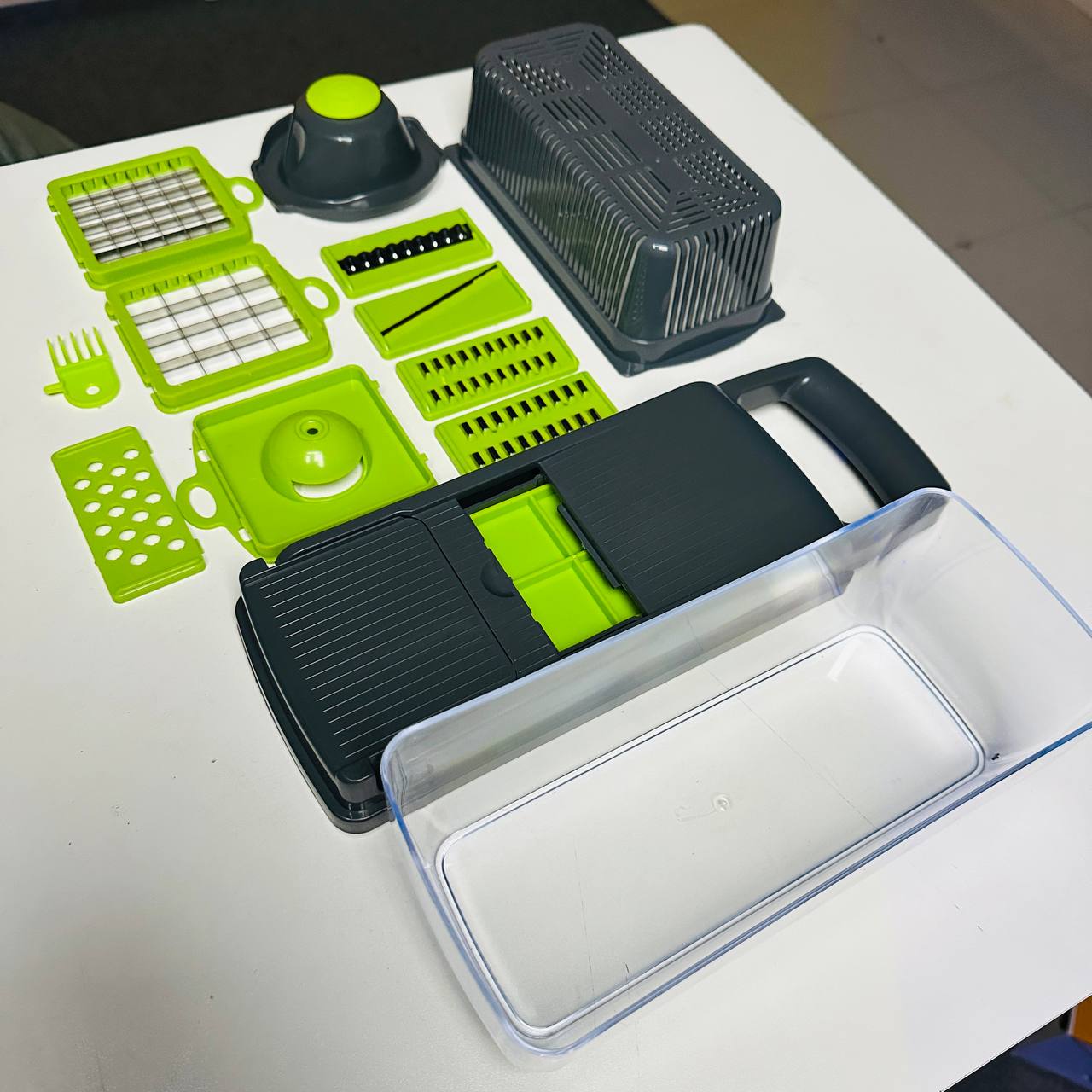 এই অত্যাধুনিক কিচেন টুলটি একাধিক কাজের জন্য উপযুক্ত — কাটাছেঁড়া, টুকরো করা, কিউব বানানো, গ্রেটিং, জুলিয়ানিং এবং স্পাইরাল কাটিং সহ মোট 16টি ভিন্ন ফাংশন সম্পন্ন। রান্নার প্রস্তুতি দ্রুত ও ঝামেলামুক্ত করতে এটি একটি আদর্শ সহায়ক।