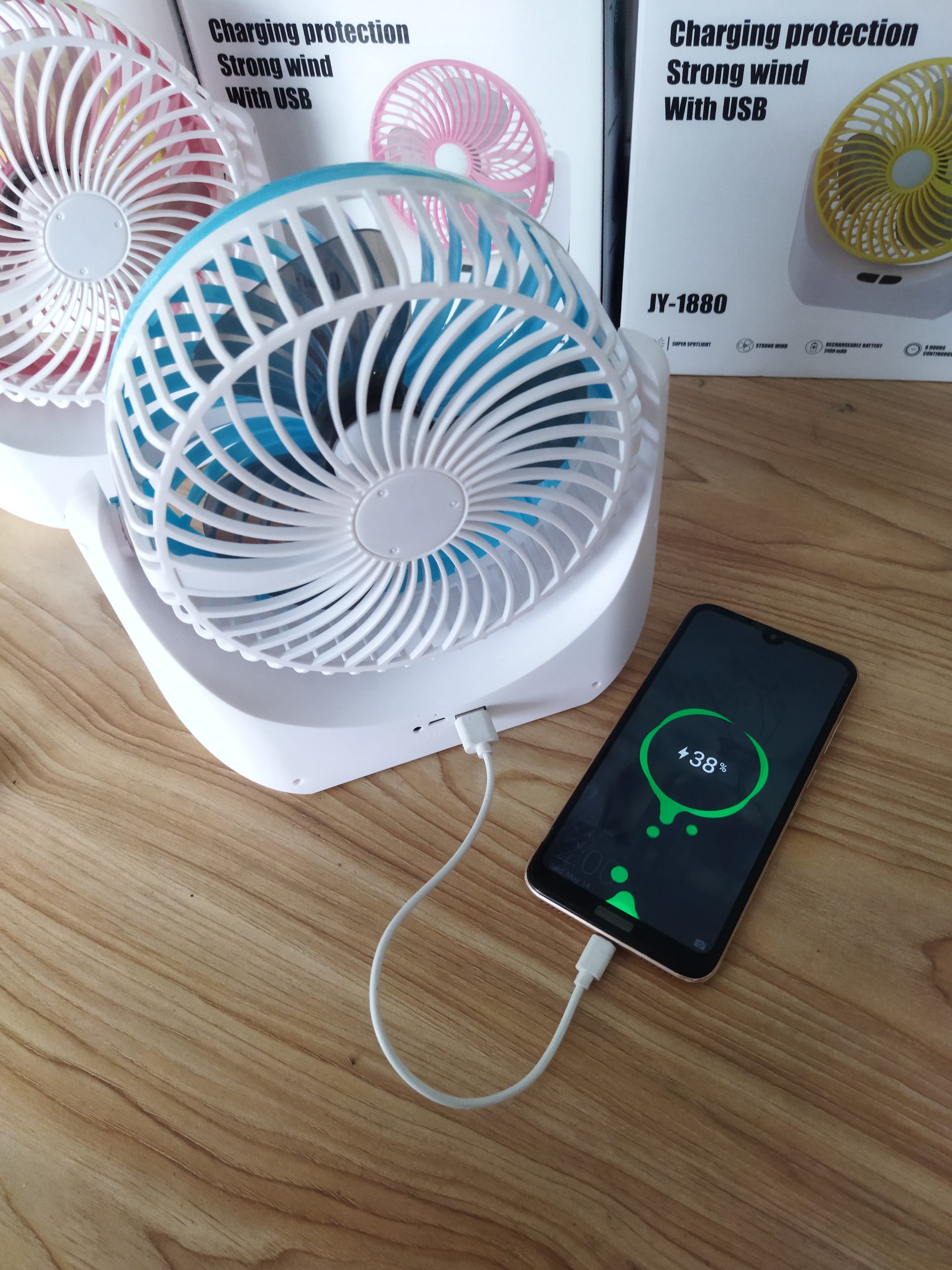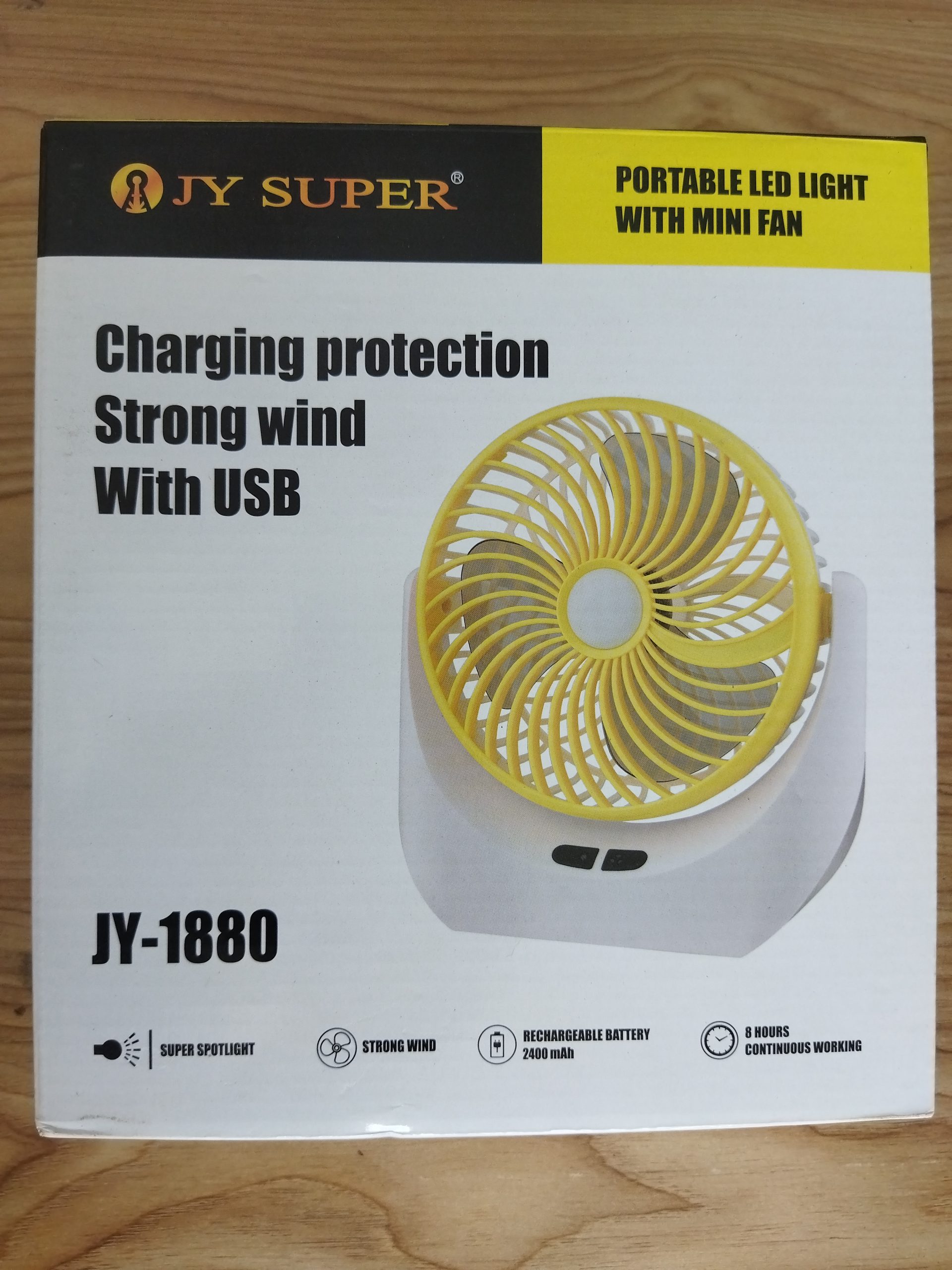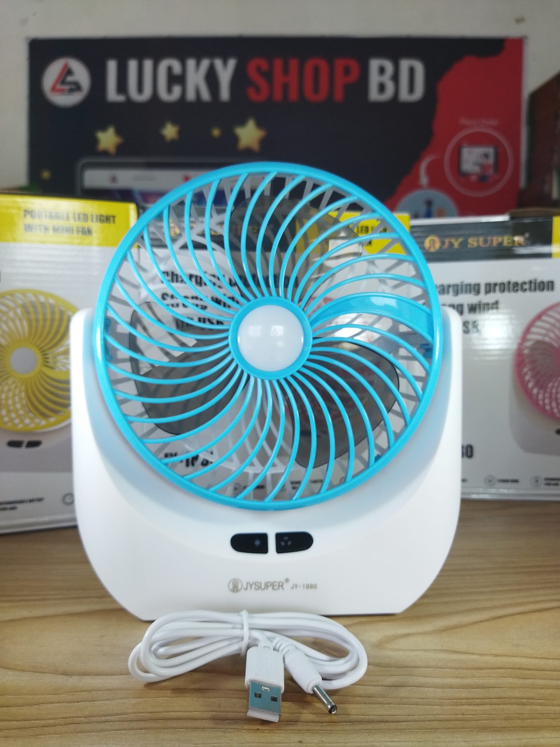Portable LED Light with Mini Fan (JY-1880) হলো একটি স্মার্ট গ্যাজেট যা একসাথে ফ্যান ও LED লাইট হিসেবে কাজ করে। গরমের দিনে বা বিদ্যুৎ না থাকলে এটি আপনাকে দেবে ঠাণ্ডা বাতাস এবং উজ্জ্বল আলো। ছোট আকার ও হালকা ওজনের কারণে সহজেই বহন করা যায় – পড়াশোনা, অফিস, ক্যাম্পিং বা ভ্রমণে ব্যবহার উপযোগী।