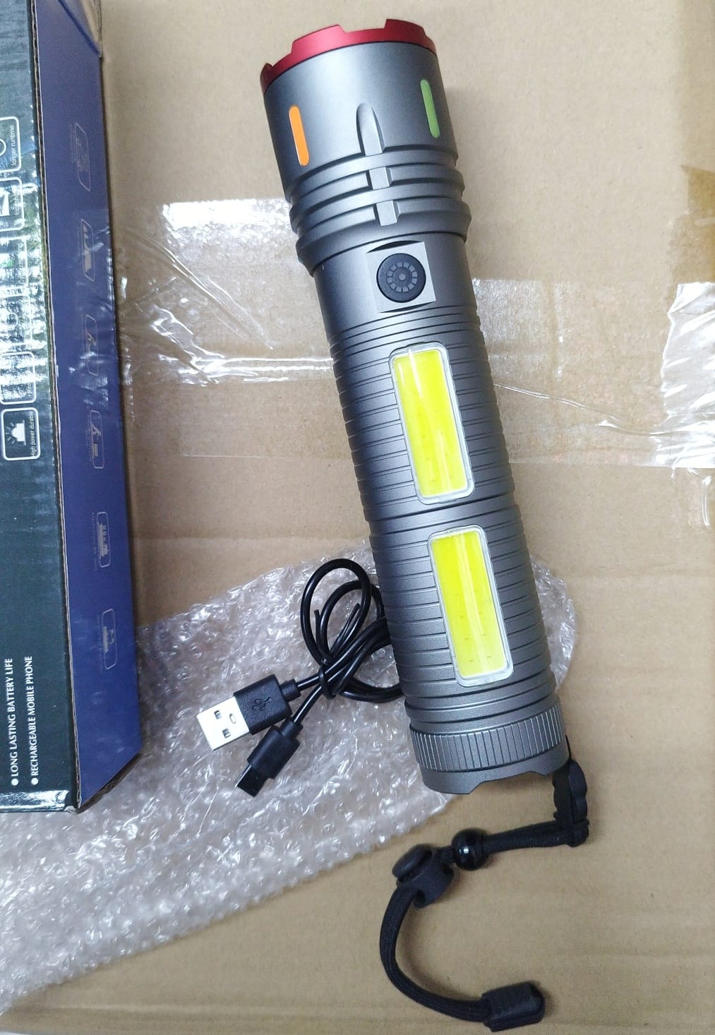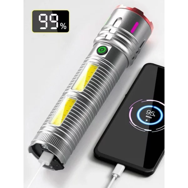 With a 1000-meter white laser beam, the X03 Rechargeable Aluminum Alloy Torch Light pierces darkness. Integrated digital displays track power levels while the 30000mAh battery charges mobile devices. Under the stress of load shedding, this hardware maintains visibility.