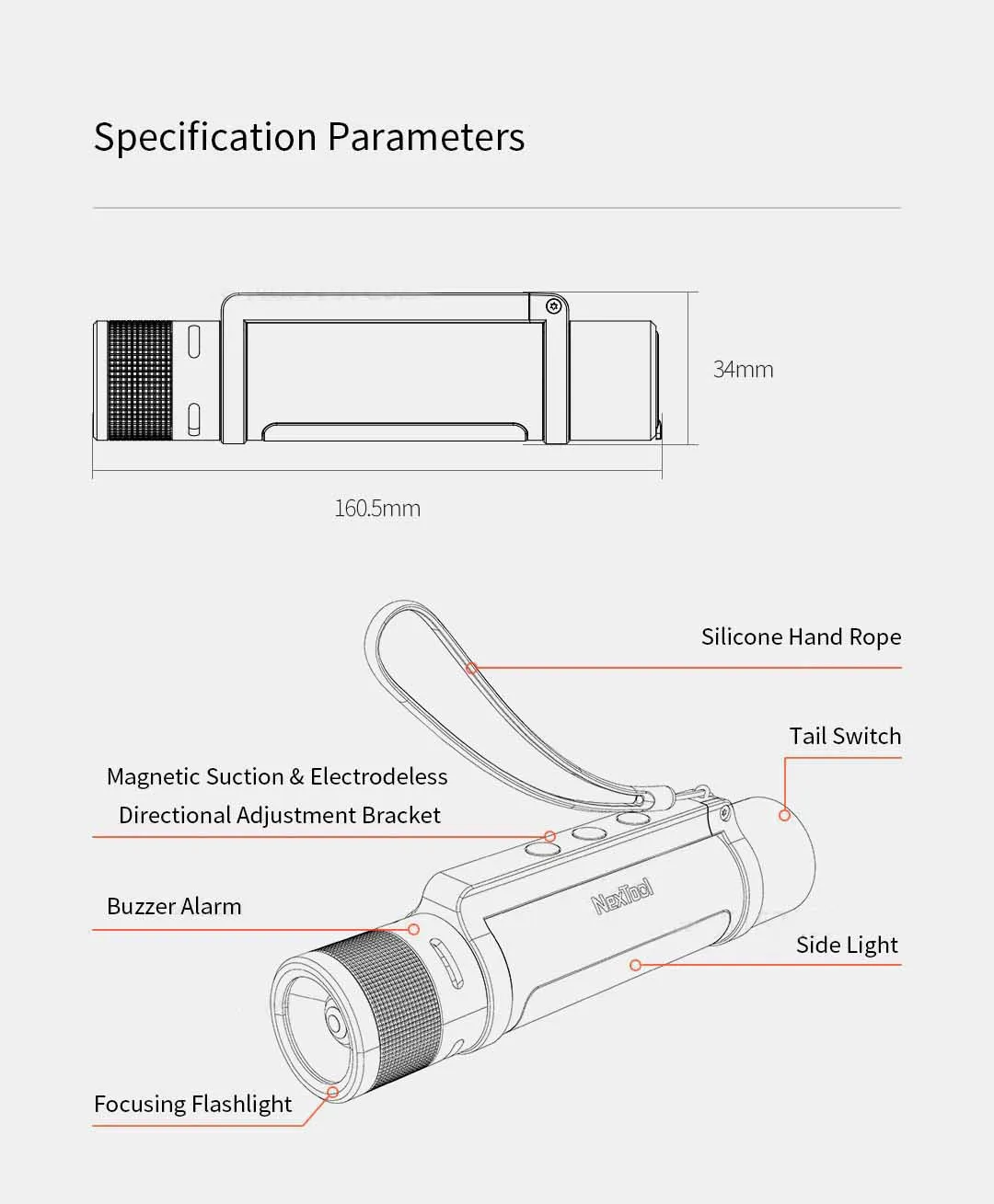 NEXTOOL 6-in-1 1000lm Dual-light Zoomable Alarm Flashlight