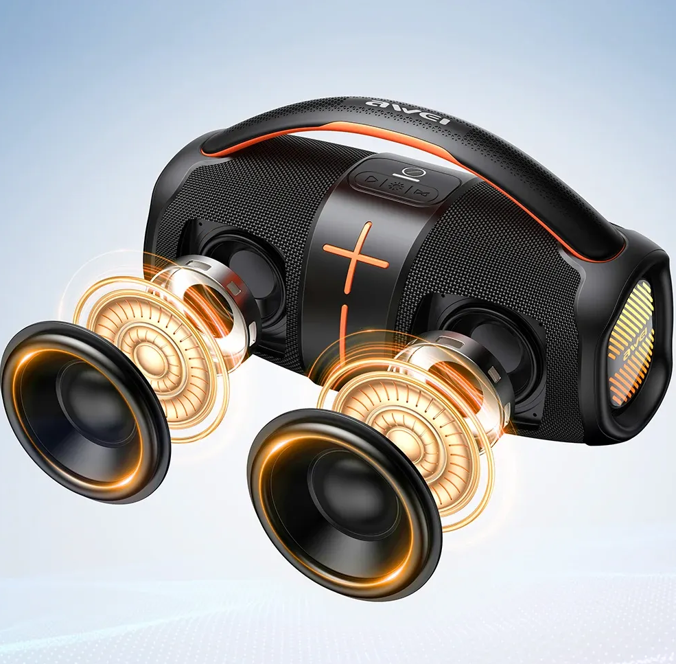 The Awei Y887 Portable Bluetooth Speaker is a strong and adaptable outdoor audio solution that offers immersive sound and current features. The Y887 Bluetooth Speaker supports Bluetooth 5.3 with EDR for fast, reliable connections and better audio streaming across a broad range of devices, including smartphones, TVs, laptops, and tablets. The speaker has two 4Ω 10W speakers that produce rich stereo sound. Its built-in amplifier can output up to 20W for high-volume, high-impact audio. Powered by a 3,600mAh built-in lithium battery, it provides 4 to 7 hours of gameplay depending on use and recharges completely in 4 hours using its Type-C charging port. The Awei Y887 also supports TWS (True Wireless Stereo), which allows you to connect two speakers for a more immersive, dynamic audio experience. The Y887has progressive lighting effects that enhance the ambiance, making it ideal for parties or outdoor events. With a sturdy construction weighing 1185 grams, the speaker is designed for portability and durability, and its IPX5 waterproof classification protects against splashes and light rain, making it ideal for outdoor activities. The Y887 speaker has three ports Type-C, Type-A, and AUX for versatile connectivity and controls for play, stop, and volume adjustment. The Awei Y887, which combines high-resolution sound with durable durability, is designed to improve your audio experience indoors and outdoors.