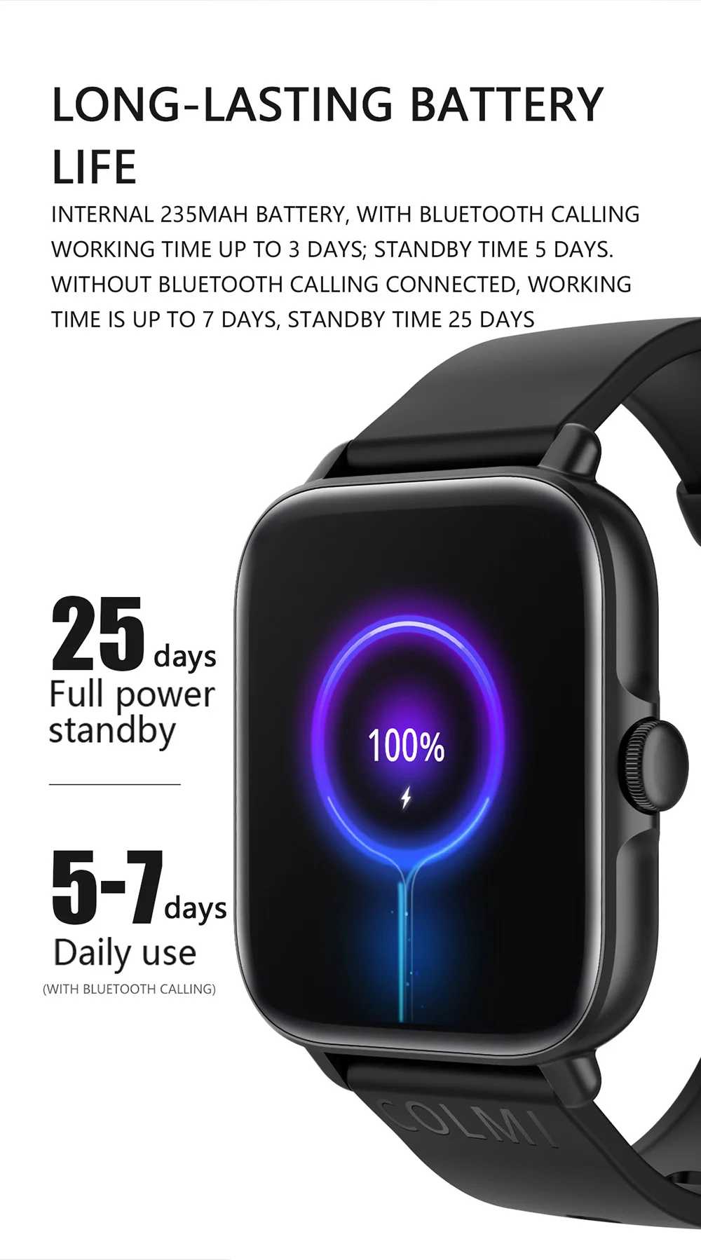 -Battery Capacity: 235mAh With Battery life of about 3-7days