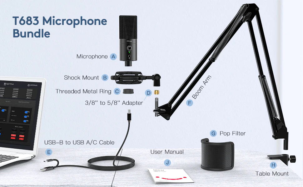 Packaging Content:- Fifine T683 USB Condenser Microphone