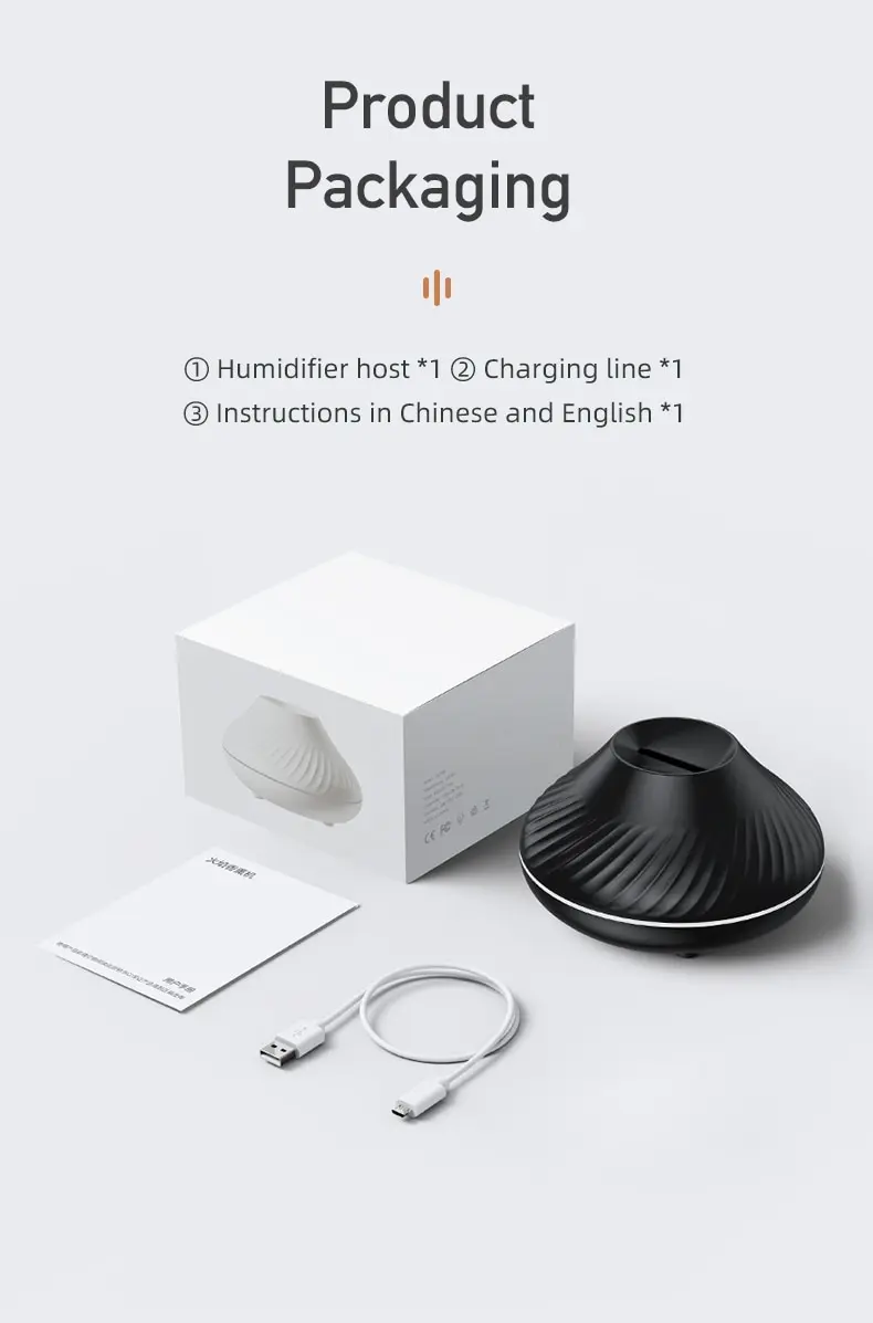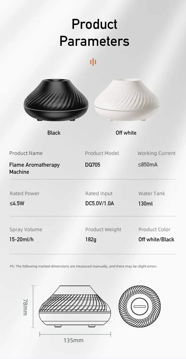 2. The PP material water tank can be added with essential oils for aromatherapy and atomization, and the brightness of the two flame lights can be adjusted