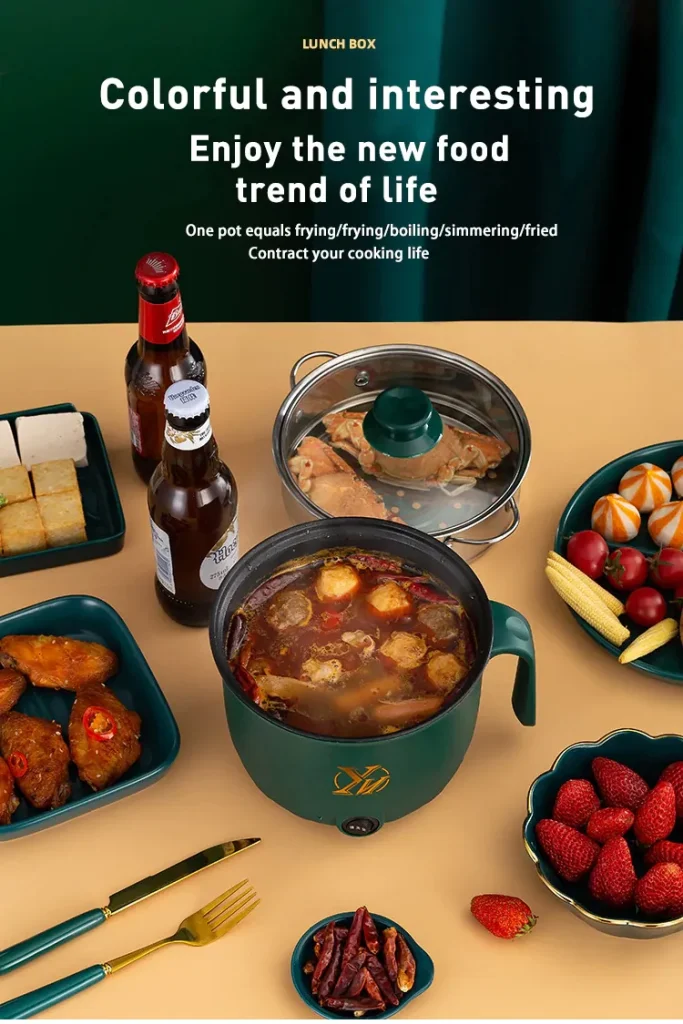 YN Electric Cooking Pot Double Deck–18cm – Green Color